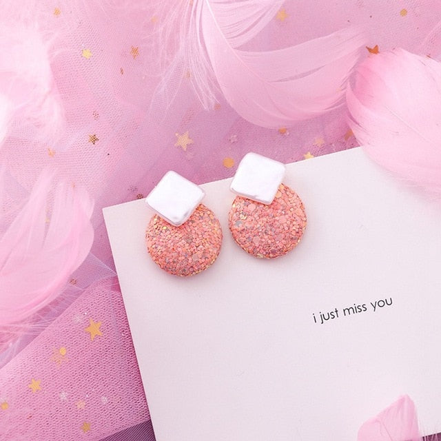 2019 Pink Earrings Korean Flower Sweet Geometric Earring Simulated Pearl pendientes mujer For Women Tassel Ear Jewelry brincos