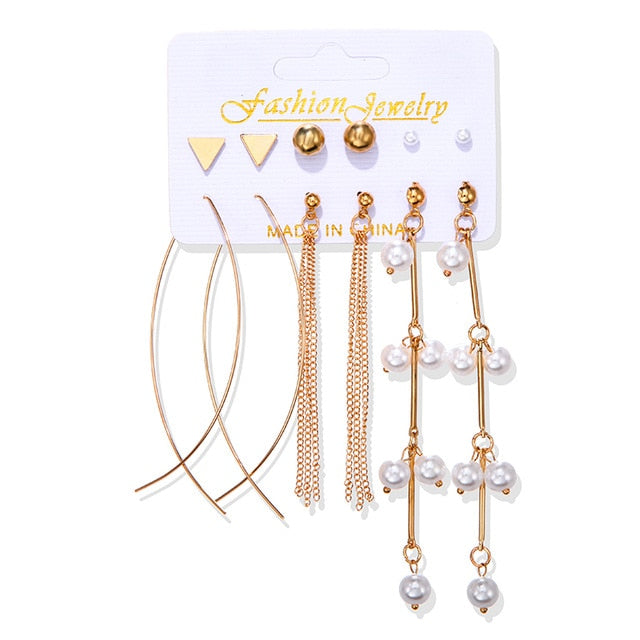 Women's Earrings Set Tassel Pearl Earrings For Women Bohemian Fashion Jewelry 2020 Geometric kolczyki Hoop Earings