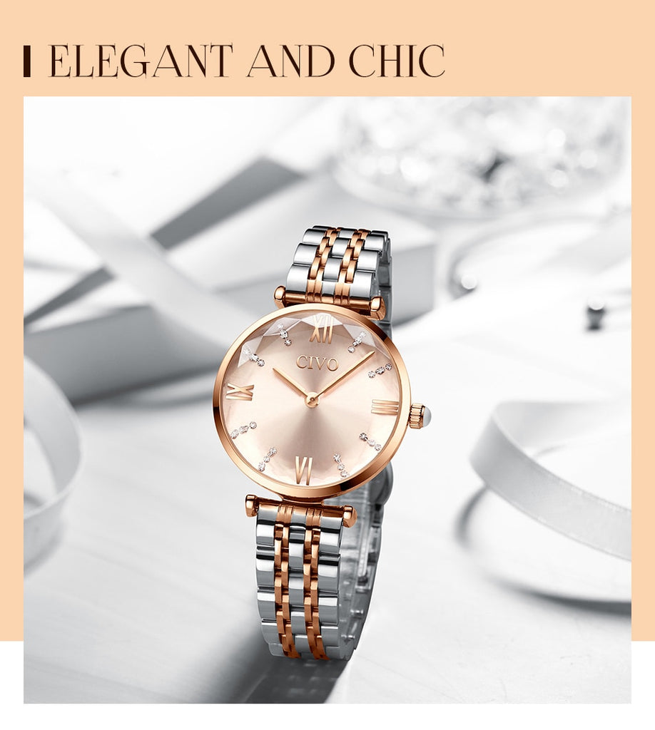 سيفو ساعة كريستال فاخرة المرأة مقاوم للماء ارتفع الذهب الصلب حزام السيدات ساعات المعصم العلامة التجارية الأعلى سوار ساعة Relogio Feminino