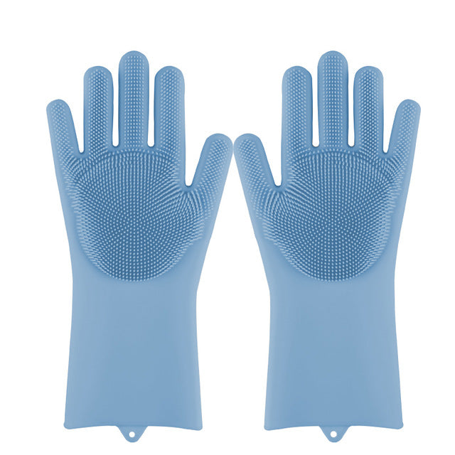 Magic Silicone Dishwashing Scrubber Dish Washing Sponge Rubber Scrub Gloves Kitchen Cleaning 1 Pair