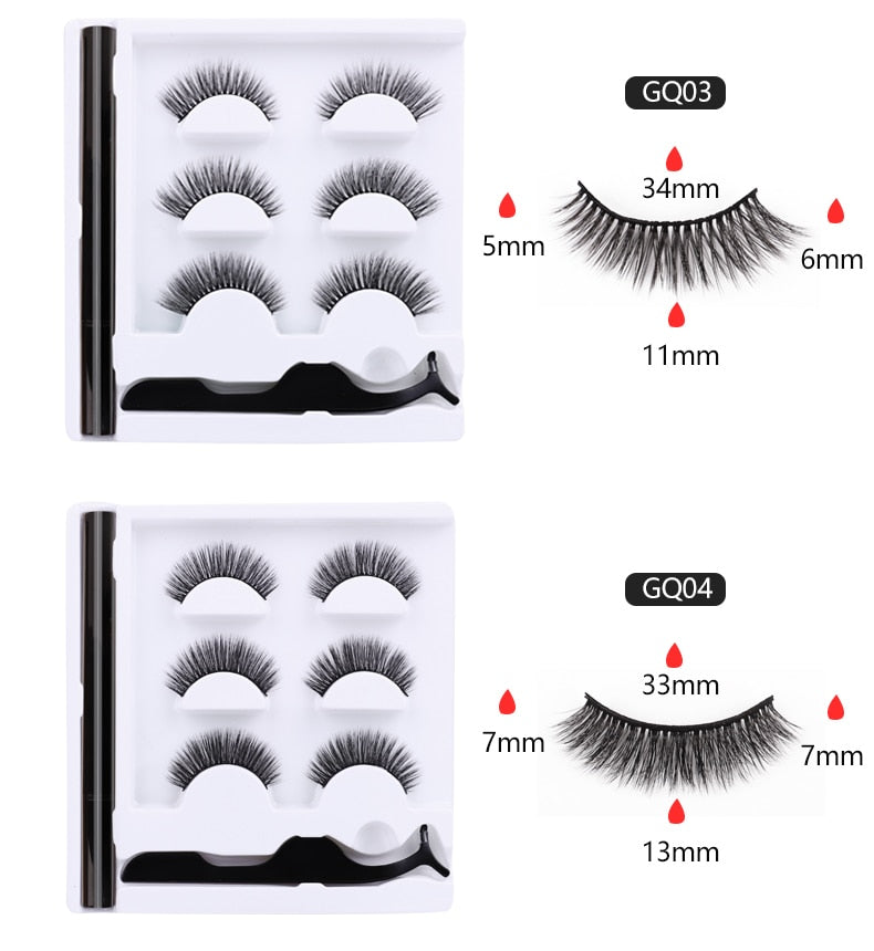 Shozy 3 Pairs 3D Mink False Eyelashes for Natural Magic Eyelash Extension Set No Glue Easy to Wear Reusable Lashes