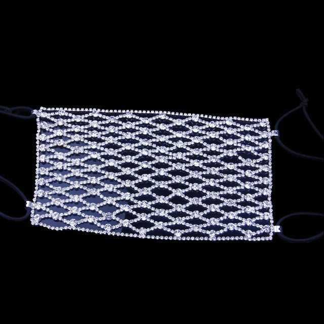 Stonefans Unisex Fashion Rhinestone Mask Decorations Jewelry Face Elastic Mask Shiny Crystal Jewellery Party Dance Cosplay Decor